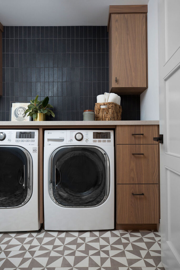 With every project, balancing form and function is key, especially when you have young kids. Our goal in each space was to optimize the layout, maximize functionality, and identify the right elements and finishes. While every element of this family-friendly home design of this home needed to absolutely withstand the daily wear and tear of family life, we wanted to avoid appearing basic or “kid-friendly.” Our clients expressed a love for bold colors and geometric tiles, which provided a great starting point in every space.