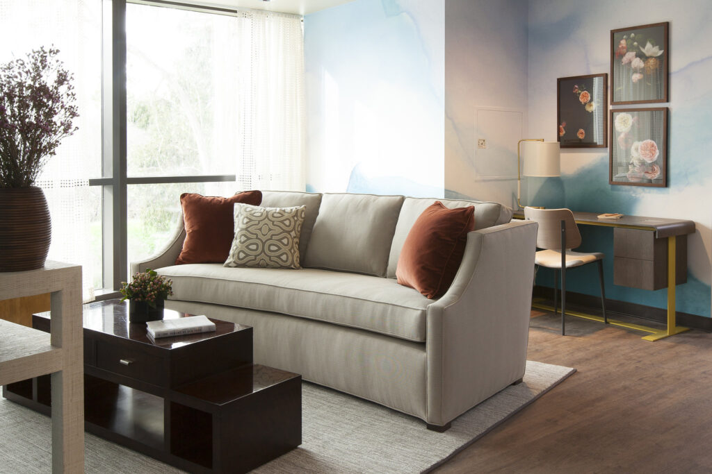We believe that the atmosphere you live in has a significant impact on your mental health and emotional well-being. Through healing space design, we curate these spaces to promote healing from the trauma that often accompanies medical emergencies and extended visits. By layering cheerful details, selecting calming colors, and sourcing functional furnishings that balance beauty with practicality, we aimed to provide a restorative yet fun atmosphere for these families.